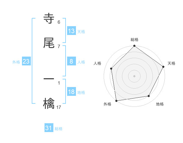 寺尾 一檎さんの総格は31画の5点!