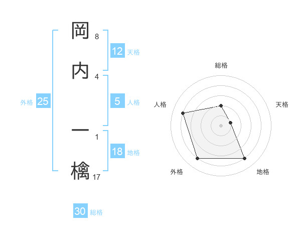 岡内 一檎さんの総格は30画の2点!