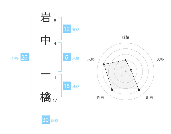 岩中 一檎さんの総格は30画の2点!