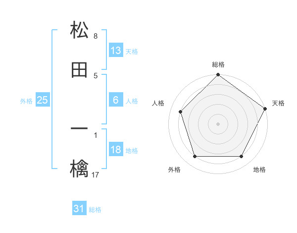 松田 一檎さんの総格は31画の5点!