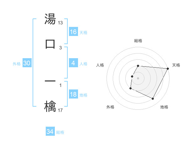 湯口 一檎さんの総格は34画の2点!
