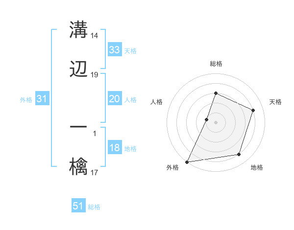 溝辺 一檎さんの総格は51画の3点!