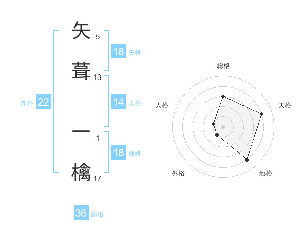 矢葺 一檎さんを姓名の画数から五運を鑑定