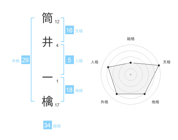 筒井 一檎さんの天格は16画の5点!