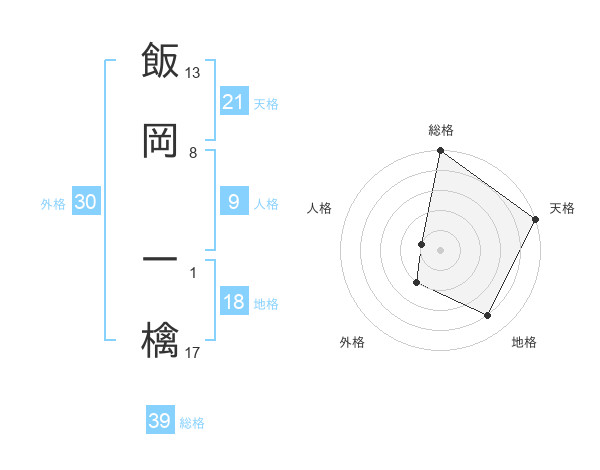 飯岡 一檎さんの総格は39画の5点!