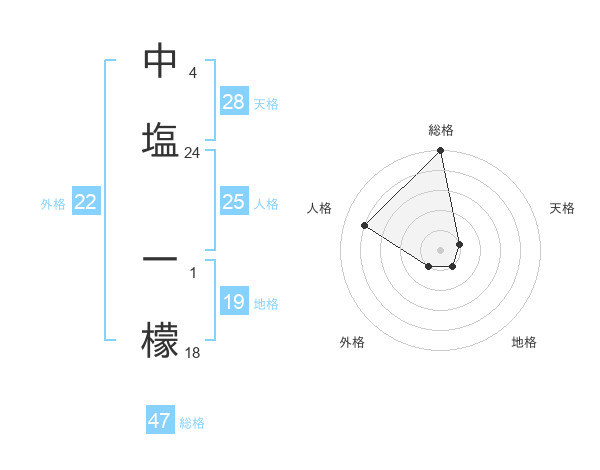 中塩 一檬さんを姓名の画数から五運を鑑定
