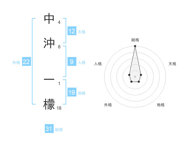 中沖 一檬さんの総格は31画の5点!