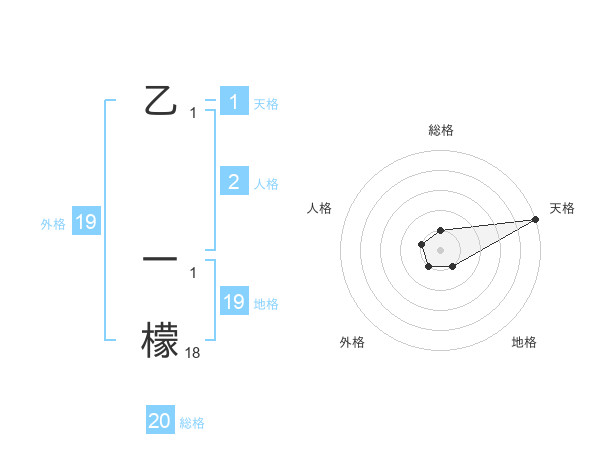 乙 一檬さんの天格は1画の5点!