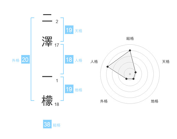 二澤 一檬さんの総格は38画の4点!
