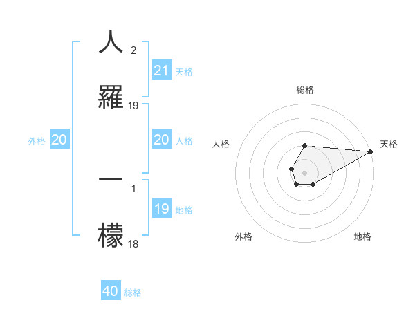 人羅 一檬さんの総格は40画の2点!