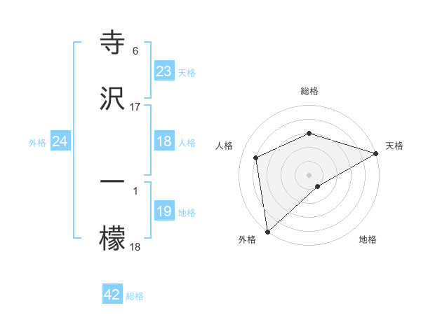 寺沢 一檬さんの外格は24画の5点!