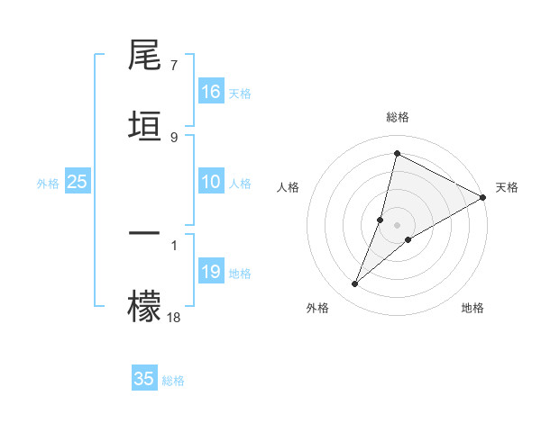 尾垣 一檬さんを姓名の画数から五運を鑑定