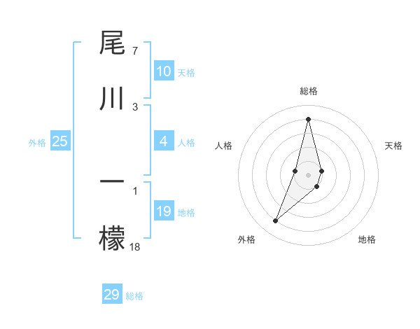 尾川 一檬さんを姓名の画数から五運を鑑定