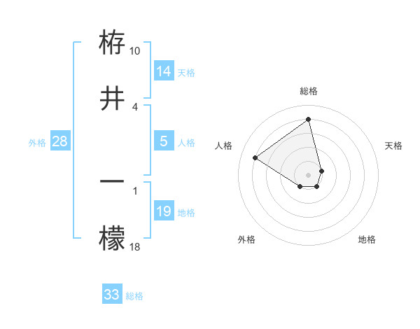 栫井 一檬さんの総格は33画の4点!