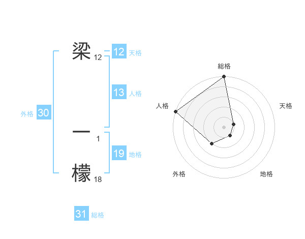 梁 一檬さんの総格は31画の5点!