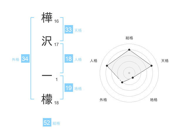 樺沢 一檬さんの総格は52画の4点!