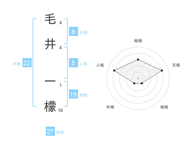 毛井 一檬さんを姓名の画数から五運を鑑定
