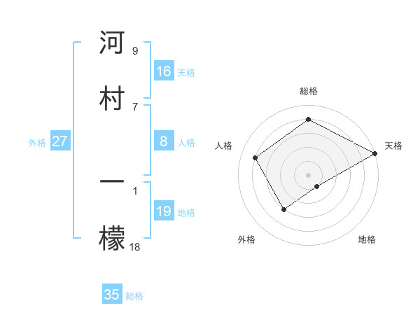河村 一檬さんの天格は16画の5点!