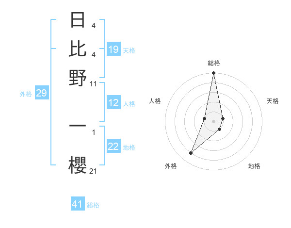 日比野 一櫻さんを姓名の画数から五運を鑑定