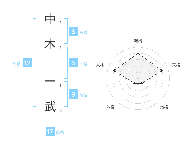 中木 一武さんの総格は17画の4点!