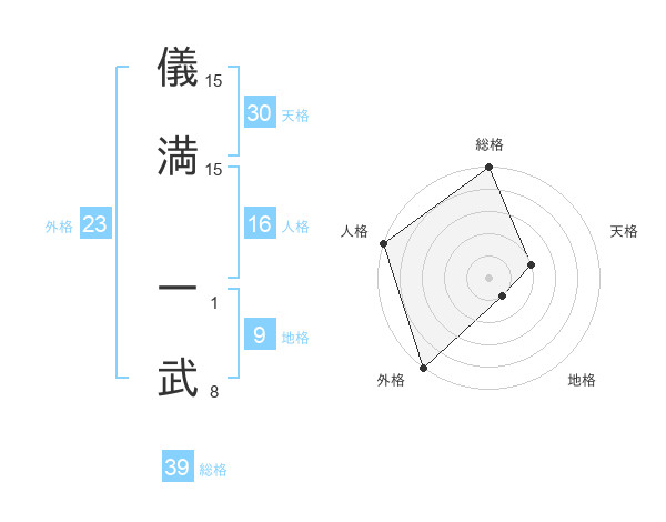 儀満 一武さんの総格は39画の5点!