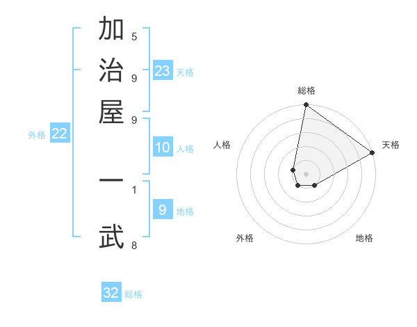 加治屋 一武さんを姓名の画数から五運を鑑定