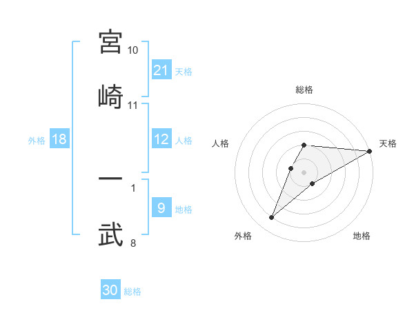 宮崎 一武さんの天格は21画の5点!