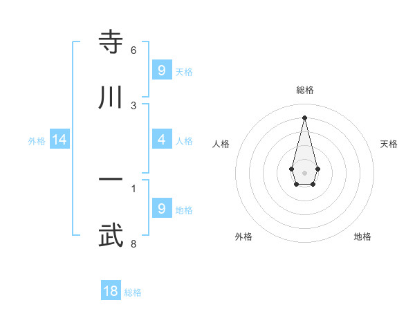 寺川 一武さんの総格は18画の4点!