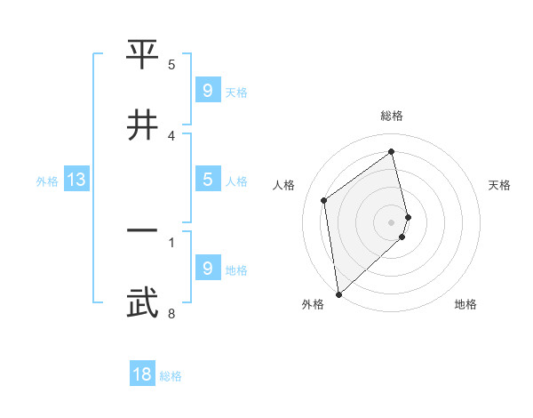 平井 一武さんの総格は18画の4点!
