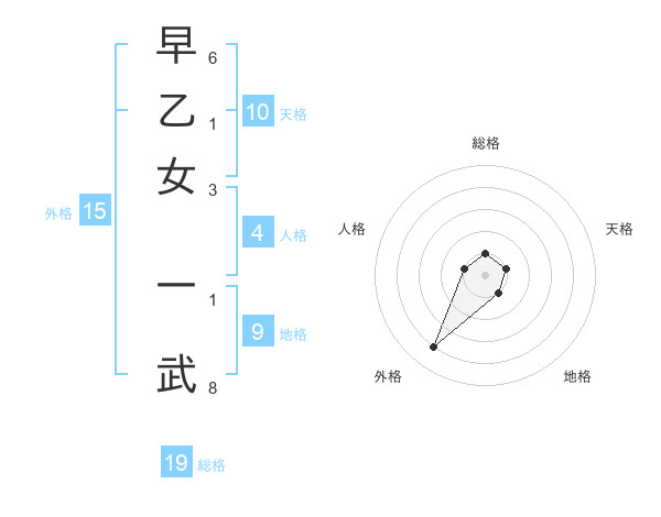 早乙女 一武さんを姓名の画数から五運を鑑定