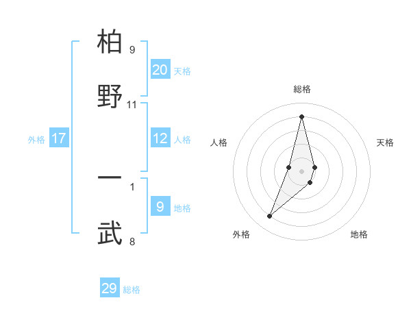 柏野 一武さんの総格は29画の4点!