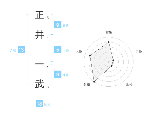 正井 一武さんの外格は13画の5点!