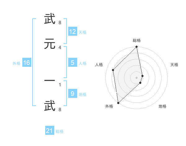 武元 一武さんの総格は21画の5点!