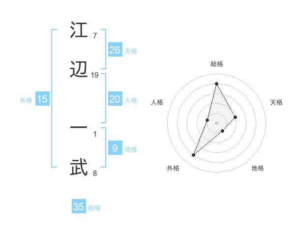 江辺 一武さんの総格は35画の4点!