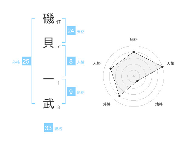 磯貝 一武さんの外格は25画の4点!