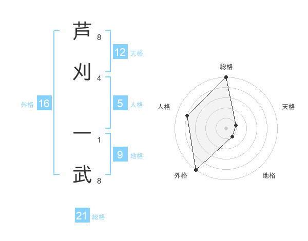 芦刈 一武さんの総格は21画の5点!