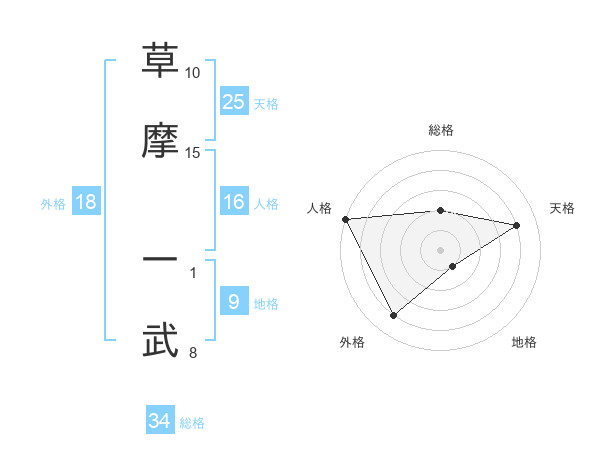草摩 一武さんの外格は18画の4点!