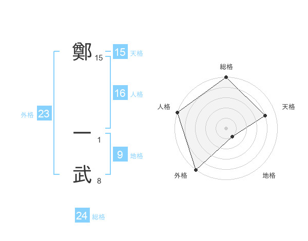 鄭 一武さんの外格は23画の5点!