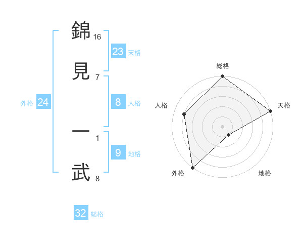錦見 一武さんの総格は32画の5点!