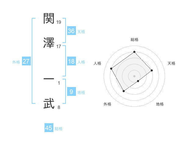 関澤 一武さんの総格は45画の4点!