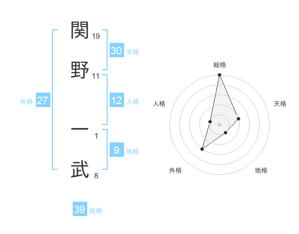 関野 一武さんの総格は39画の5点!
