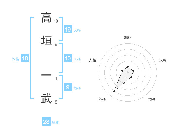 高垣 一武さんの天格は19画の1点!