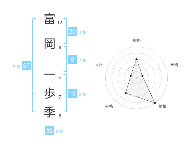 富岡 一歩季さんを姓名の画数から五運を鑑定