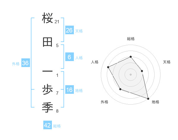 桜田 一歩季さんを姓名の画数から五運を鑑定