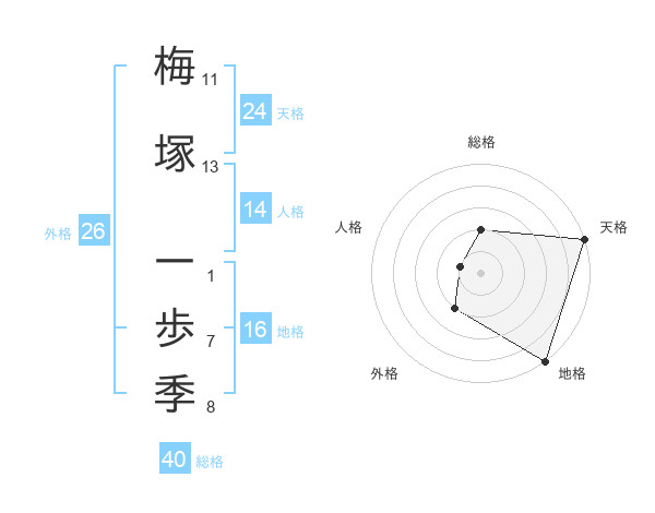 梅塚 一歩季さんの天格は24画の5点!