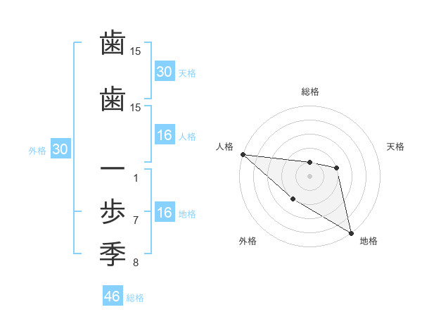 歯歯 一歩季さんの外格は30画の2点!