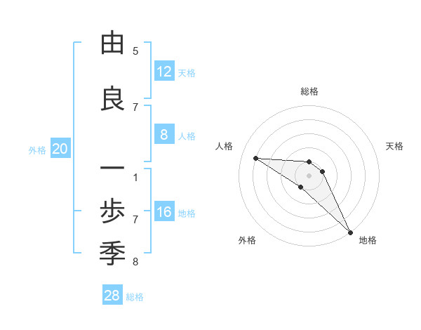 由良 一歩季さんを姓名の画数から五運を鑑定
