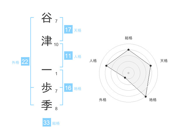 谷津 一歩季さんを姓名の画数から五運を鑑定