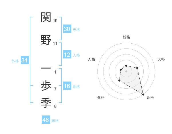 関野 一歩季さんを姓名の画数から五運を鑑定