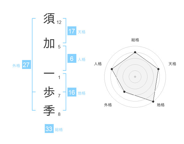 須加 一歩季さんを姓名の画数から五運を鑑定